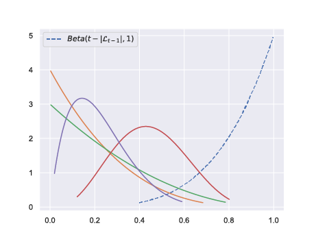 In particular, for Gaussian bandits: \[ \color{lightskyblue}{W_n(i,j)} = \dfrac{(\mu_{n,i}-\mu_{n,j})^2}{2\sigma^2(1/T_{n,i}+1/T_{n,j})}\mathbb{1}\{\mu_{n,j}<\mu_{n,i}\}. \]